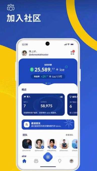 用户可以通过现有会员的邀请加入ice 网络,立即开始赚取和建立自己的微社区。