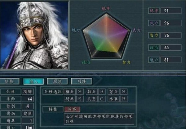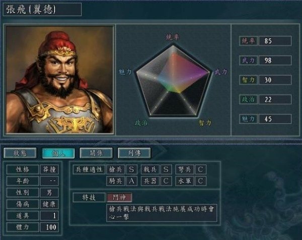 观察武将的适性S>A>B>C,生产装备配置给适性和统帅值高的武将。