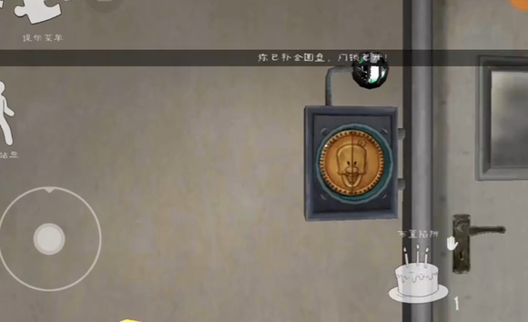 1、找到两半圆盘放入圆形锁,打开房间。进入房间后做一个非常简单的冰淇淋小游戏,解锁机器重新运转。重新运转的机器传送东西时掉下来一个面具,拿上。拿上面具做人脸识别,在垃圾桶里找臭袜子。把臭袜子放入锅里。