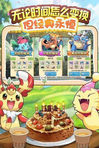 口袋之旅精灵数量众多,涵盖大量原著中的可爱萌宠,皮卡丘、鸭嘴兽、小火龙......童年记忆里神奇的小精灵都可以成为玩家爱宠。无碎片式卡牌设计,任何宠物一旦捕捉成功即可作战,让玩家轻松收集喜爱宠物,超丰富的宠物成长线,将爱宠成长尽掌在手,平凡小精灵也能神奇逆袭。