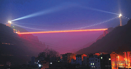 重庆网友夜泊瓜洲登矮寨大桥有感题诗曰:虎踞龙盘马卧槽,长桥悬吊两山高。行人车辆云中过,鸟语涛声风里号。前路仍需双脚走,夕阳不够一肩挑。笑吾空有安邦策,换作金钱值几毛?