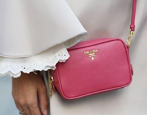 极简主义的四方轮廓,奢华的烫金logo,Prada独有的Saffiano十字纹皮革,在配上糖果色的跳跃色彩,让人怎能不爱。Tessuto的大小为10cm*15cm*5cm, 装下手机,钥匙,钱包都没问题。