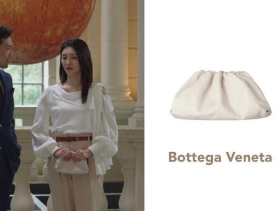 BV的云朵包是一开始漫妮背过最贵的大牌包了,像她这样搭配白色不规则上衣look,显得很Lady~