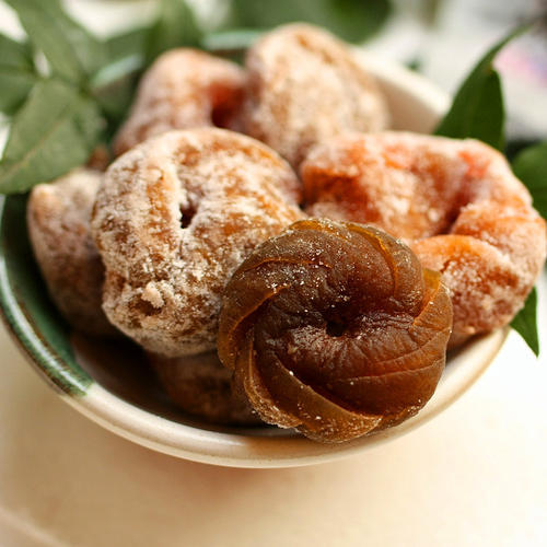 雕梅是白族传统名特食品,据史书记载在唐代南诏时期,就有探亲访友相互馈赠雕梅的风俗。雕梅因在青梅果上雕刻花纹而得名,制作工艺是以盐梅作原料,先用石灰水把盐梅浸泡,取出晾干,再用刻刀在梅肉上雕刻出连续曲折的花纹,从空隙处挤出梅核,中空如缕,轻轻压启成菊花状,锯齿形的梅饼,放入清水盆中,撒上少许食盐,以去梅子酸味,然后放入砂罐,再用上等红糖、蜂蜜浸渍数月,待梅饼呈金黄色时从瓶坛中取出食用,在古城的大街小巷里,有很多卖雕梅的果脯店。