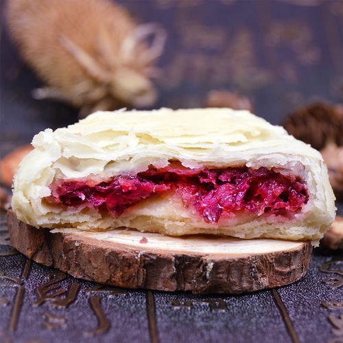 鲜花饼是以云南特有的食用玫瑰花入料的酥饼,是具有云南特色的云南经典点心代表,是中国四大月饼流派滇式月饼的经典代表之一,在云南当地烘焙品牌大都均有销售。大理古城里面大部分嘉华的店都有现烤的鲜花,味道也更好,鲜花饼保质期只有一周,价位比古城卖那种10元钱一大包的贵一些,火车站周围基本都是特产超市里面密封包装的。